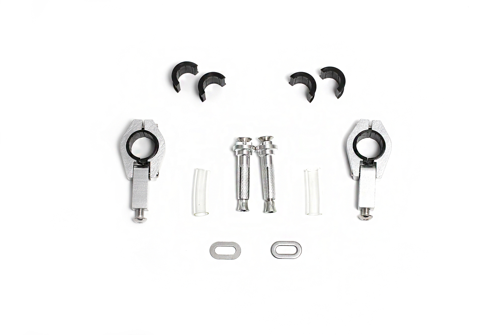 • • Крепежные элементы: анкера (2 шт.), крепёжные хомуты (2 шт.), переходные пластинки для разных диаметров