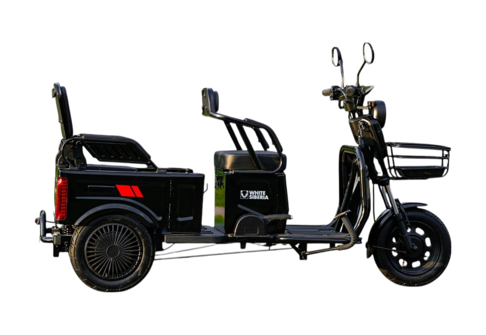 Пассажирский электрический трицикл-трансформер SIBTRIKE 2000WДанная модель рассчитана на взрослых райдеров, у которых есть дети. Поистине универсальный транспорт! Большое удобное сидение создано для продолжительных поездок. Есть откидное детское сидение и две корзинки - спереди и сзади. Аппарат подойдёт для поездок по территориям Российских санаториев, парков и набережных.Что же отличает SIBTRIKE 2000W от конкурентов?Универсальная конструкция для выполнения широкого спектра задач;Откидное детское сидение;Возможность ездить втроём – 2 взрослых места + детское сидение;Аккумулятор Li-ion 60V 21A с балансиром, запас хода до 45 км;Удобен для парков и коттеджных посёлков;Редукторный мотор с дифференциалом, что не даёт опрокидываться трициклу;Отличная тяга в гору;LED оптика;Колёса 10 дюймов.Электромотоцикл SIBTRIKE 2000W – отличный помощник для решения широкого спектра задач в санаториях, на территориях отелей, парков и набережных.Замена масла: 0,5 литра трансмиссионное GL-4 80W90Первая замена 350км, вторая 1000км, далее каждые 1500км