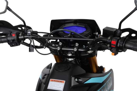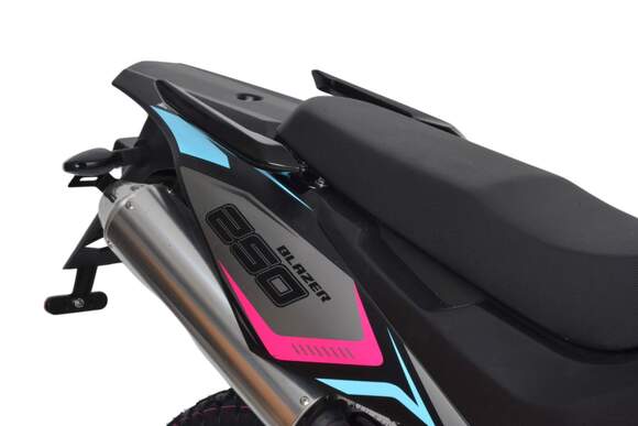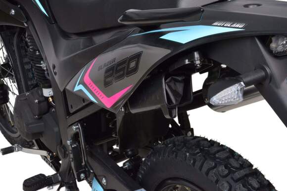 Motoland BLAZER 250 - отличный эндуро-мотоцикл по доступной цене. Двигатель 169FMM, мощностью 16 л.с., усиленную «перевернутую» переднюю вилку, защиту двигателя и рук, LCD-панель, светодиодные поворотники и стоп-сигнал и кроссовую фару.Переднее колесо 2.75-21, заднее колесо 4.0-18.мотоцикл двойного назначения – для асфальта и легкого бездорожья.Наличие ПТС дает возможность легально передвигаться по городским улицам и дорогам общего пользования, внедорожные качества позволяет без особых усилий преодолевать бездорожье. Как видите, за довольно символическую цену вы получаете полноценный эндуро мотоцикл. После небольшой доработки мотоцикла, его свободно можно использовать для эндуро рейдов.Blazer 250 отлично подойдет как опытным любителям эндуро, так и начинающим.Мотоцикл маневренный и потрясающе удобный в городе, из за своей узкой и высокой формы, способный пролезть даже в минимальные зазоры между стоящими в пробке автомобилями. , внедорожные качества позволяет без усилий преодолевать грязь и трудопроходивые места .Мягкое сидение для 2-х пассажиров и подножки пассажира для удобных совместных поездок.Тихий городской глушитель, который не доставит вам дискомфорта.Скромный расход топлива, который почти не зависит от того, с какой скоростью едет мотоцикл и на каких оборотах работает двигатель, в среднем это 3,2-3,5 л на 100 км.Мотоцикл прост в управлении и неприхотлив в обслуживании. Подходит мотолюбителям Эндуро любого возраста и опыта вождения, которым нужна техника для поездок из точки А в точку Б и обратно по дорогам и легкому бездорожью.