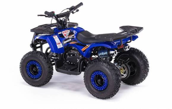 Детский бензиновый квадроцикл Motax Grizlik X-16 PS с механическим стартером подойдет детям от 3-х до 8-ми лет. Транспорт оборудован двухтактным двигателем, мощностью 3,5 л.с. Оснащен металлическими багажниками (спереди и сзади), отбойником, яркой оптикой. Система запуска - ручной стартер нового типа (легкий запуск). Разгоняется до 45 км/ч. Предусмотрен ограничитель скоростного режима. Допустимая нагрузка на изделие не должна превышать 60 кг.