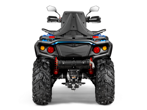 Комплектация Комбинация приборов Электронный ключ зажигания, LCD приборная панель 6,86 дюйма с индикацией основных параметров: вкл/выкл полного привода, индикацией уровня топлива, сигналов поворота и аварийной остановки, подсветки, переключение режимов усилителя руля, информация о техническом обслуживании. Лебедка Лебедка с синтетическим тросом и тросоукладчиком, тяговое усилие 1500 кг Элементы защиты Ветрозащита рук на руле, расширители колесных арок, усиленный передний и задний бампер, замок блокировки рулевого вала Дополнительное оборудование Электроусилитель руля, cветодиодная оптика, дополнительный свет, фаркоп с электроподготовкой, звуковой сигнал, сигналы поворота, зеркала заднего вида, бардачок объемом 2 литра под сиденьем, алюминиевые подножки водителя, эргономичная задняя и передняя багажные площадки, розетка 12 Вольт и USB.
