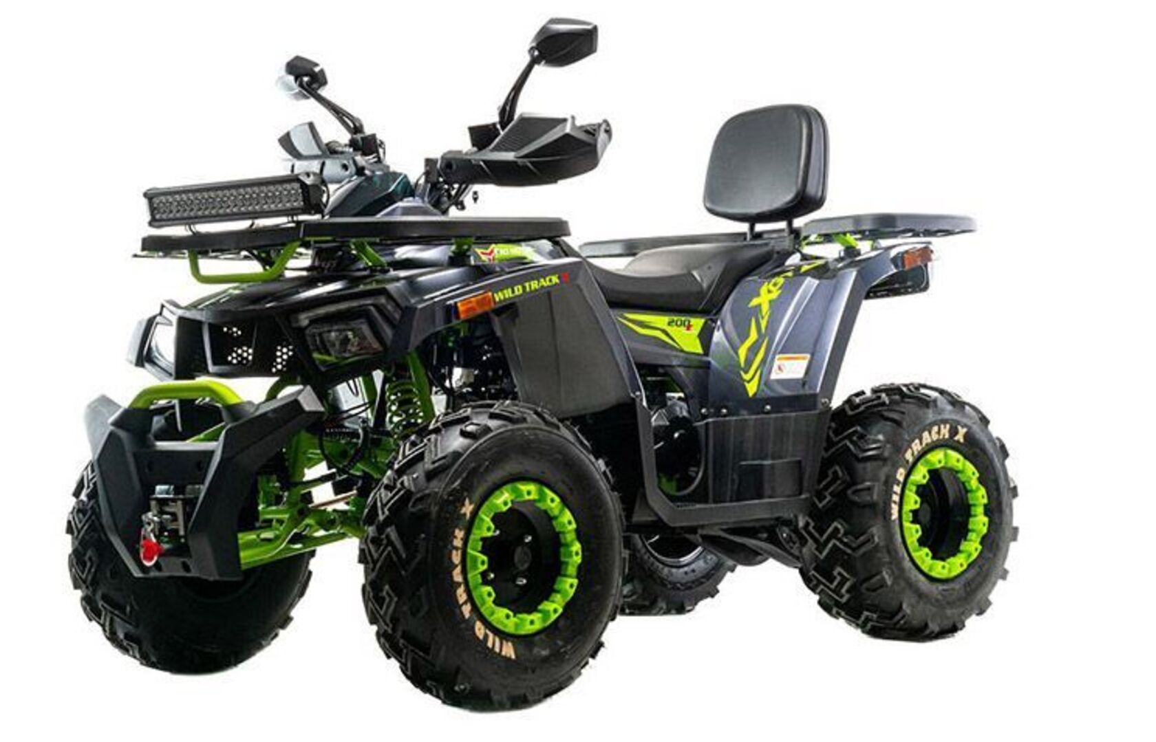 Квадроцикл 200 Wild Track X WINCH сочетает в себе удобство, простоту обслуживания и хорошую проходимость в самых разных условиях использования.Благодаря отлично настроенной подвеске, управление и передвижение на нем становится очень комфортным. Все неровности и кочки будут проглатываться без проблем, ведь на нем установлены колеса на 10 дюймов.Квадроцикл оснащен двигателем 161 QMK на 200 см3 c воздушно-маслянным охлаждением и автоматической коробкой передач с реверсом, дисковыми тормозами, ЖК панелью приборов, светодиодной оптикой с ДХО, ручным и электростартером.Он отлично подойдет для семейных покатушек, а также для рыбалки и охоты. Вы получите незабываемые впечатления от вождения.Отличия от модели 200 Wild Track X:- лебедка