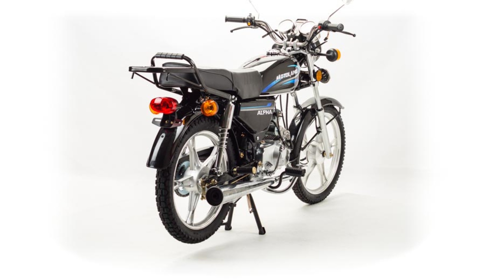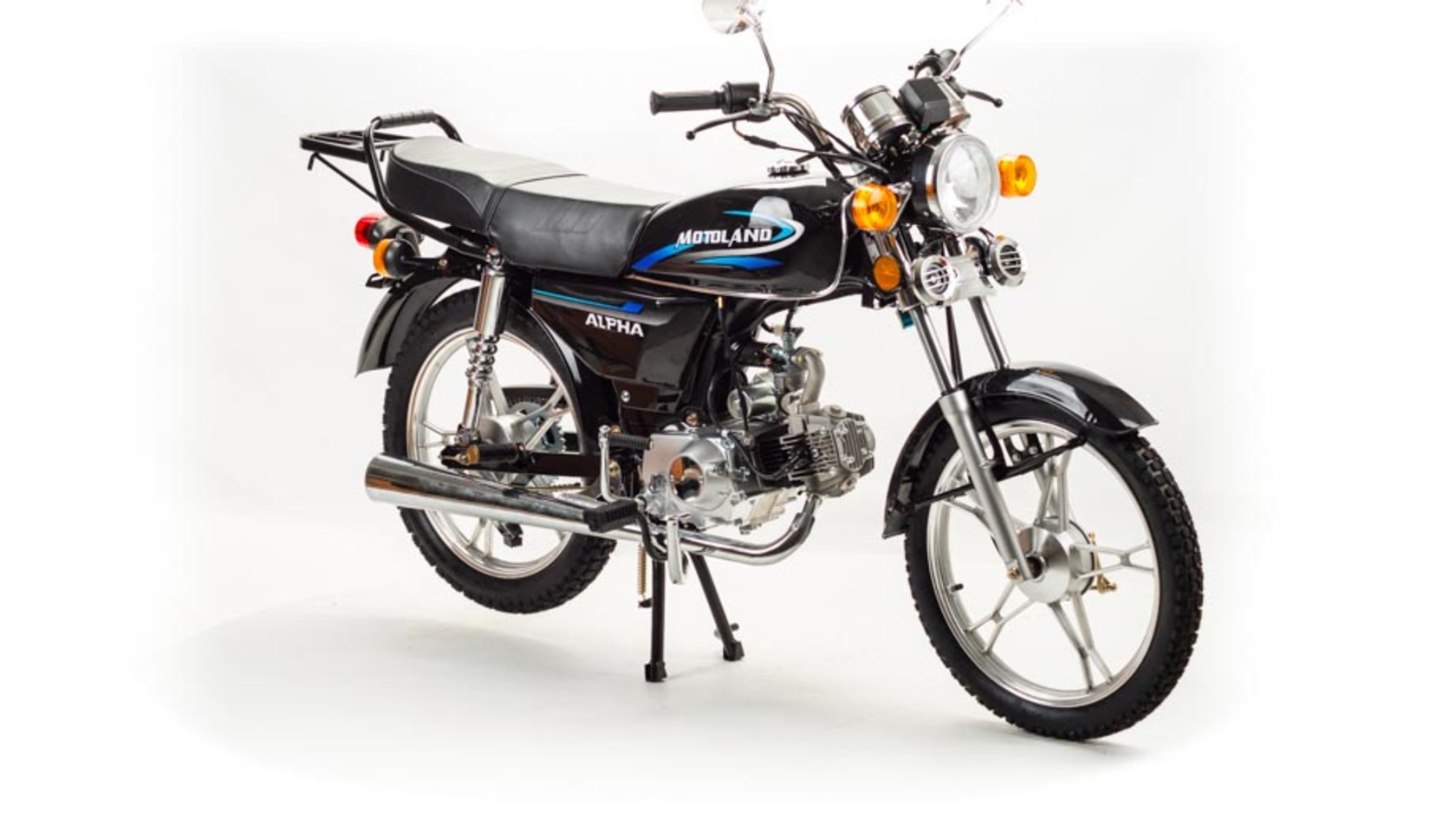 MotoLand Alpha 11 это всеми полюбившейся мопед который не нуждается в представлении.Мопед можно использовать для самых различных целей: для одиночного или совместного передвижения в городском потоке, сельской местности, поездки на природу, рыбалку и охотуПри этом он универсален и подходит мотолюбителям любого возраста,и опыта вождения.Для подростков, подойдет как подарок и первый мотоцикл для только начинающего свое знакомство с миром мототехникиВзрослых, которым нужна техника для поездок из точки А в точку Б и обратно, именно в таком режиме он способен показать себя с лучшей стороны.Мопед полностью отвечает требованиям к безопасному движению по городу и за городом: оснащен фарой дальнего и ближнего света, поворотниками, стоп-сигналом, звуковым сигналом, зеркалами заднего вида, габаритными светоотражателямиДля того чтобы ездить на мопеде, нет необходимости в регистрации в ГАИ и страховка.Техническая сторонаМопед поставляется с 50 кубовым одноцилиндровым четырехтактным двигателем с воздушным охлаждением ZS50-A (139FMB) конструкция которого полностью повторяет знаменитый мотор HONDA CUB.Установлен карбюратор PZ19 с системой обогащения и пуском в любую погоду и время года.Двигатель работает ровно, имеет высокую мощность в широком диапазоне оборотов, что позволяет комфортно трогаться и быть уверенным, что двигатель не заглохнет в неподходящий момент.Двигатель имеет возможность легкого запуска с кнопки на руле, так как имеет электростартер, а при необходимости можно воспользоваться кик стартером.Механическая трансмиссия содержит 4 передачиМопед имеет хорошую динамику разгона, расход 3 л на 100 км, объем бака 7л, которого хватит на 200+км