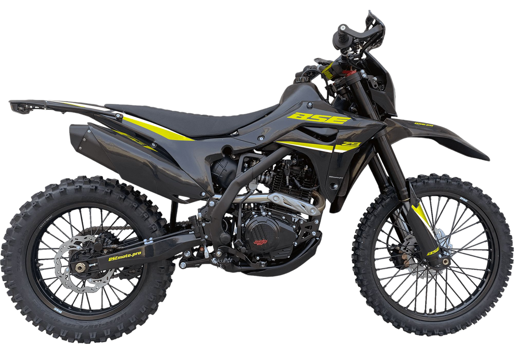 BSE Z9 – полноразмерный спортивный эндуро мотоцикл на стальной раме. Оснащен новым мотором ZS175 300 кубов с воздушным охлаждением. Лёгкий и маневренный. Выполнен полностью в черном цвете.