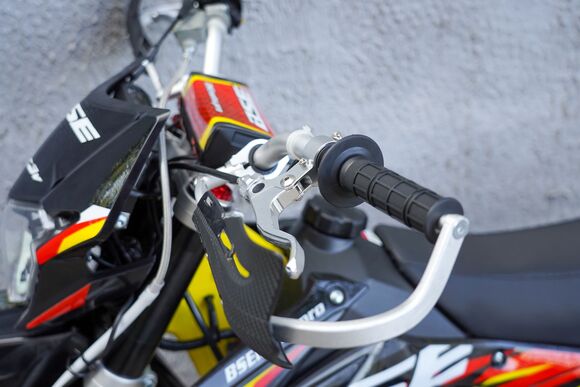 BSE RUSSIA представляет новинку 2024 - модель Z3 V!Бестселлер среднеразмерного сегмента BSE Z3 V обзавелся вариацией двигателя Zonsen ZS172FMM-5 с балансирным валом! Теперь минимум вибраций!Двигатель Z3 V: тяговитый 4-х тактный Zonsen ZS172FMM-5 (PR250) c балансирным валом. Рабочий объём: 250cc, 2-клапанная ГБЦ, воздушное охлаждение, мощность 21 лс. Легко контролируемая подача мощности благодаря карбюратору Nibbi Racing PE30 и отличный отклик дроссельной заслонки на короткоходную ручку газа. Коробка передач – механическая 5-ступенчатая, запуск – электростартером и кикстартером. Мотор очень эластичный, с отличными показателями крутящего момента на низких и средних диапазонах. А легендарная надежность завода моторов ZONSEN, удобство в обслуживании и доступность запчастей в представлении не нуждается!Среднеразмерный эндуро Z3 V готов на любые приключения! Мотоцикл оснащается стальная рамой повышенной жёсткости BOSUER с усилителями и алюминиевым мятником. Подвеска – регулируемая Mojo Standard с большими ходами помогает отрабатывать даже самые жесткие приземления, с лёгкостью "глотая" все неровности. Установлена прогрессия задней подвески. Мощная гидравлическая тормозная система HSK RACING остановит ваш мотоцикл максимально эффективно.Комфорт. Его на BSE Z3 V в избытке: полностью светодиодная фара головного света с 5 модулями и полоской дневного хода, задний стоп сигнал, USB зарядка, электростартер, удобное сиденье, широкий спортивный алюминиевый руль. Благодаря ЖК приборной панели и датчику моточасов вы всегда будете знать о всех главных параметрах мотоцикла. Металлическая зашита рук, задний багажник, буксаторы на усиленных ободах. Z3 V 21/18 в стандарте обут в «зубастые» покрышки Yanxing, спереди: 80/100- 21, сзади: 110/90 -18. Z3 V точно не спасует в условиях серьезного бездорожья.Компактный, легкий, с минимальным и вибрациями и фантастической управляемостью -отличный выбор для райдеров начального и среднего уровня. Чрезвычайно удачный, сбалансированный и комфортный мотоцикл. Современный яркий дизайн пластика. Z3 V доступен в нескольких цветовых решениях и в двух вариантах размерности колес: 21/18 или 19/16. Особое внимание на расцветку Red Twist – это первый BSE с желтой рамой!