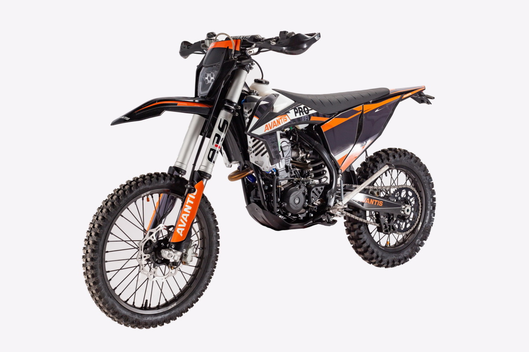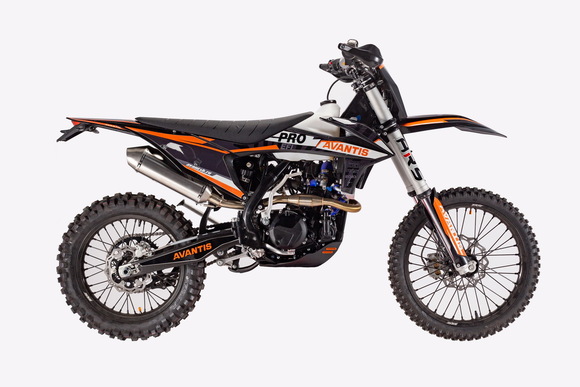 Мотоцикл Avantis Enduro 250 DOHC PRO EFI Exclusive (NC250/177MM) ARS – свежая модель 2022 года, отлично подходит для профессионального и любительского мотокросса.Четырехтактный инжекторный двигатель на 250 кубов с жидкостным охлаждением выдает внушительные 37 л.с., коробка передач механическая на 6 ступеней, надежная в работе и простая в ремонте. Завод производится кик-стартером или электростартером. Тормоза дисковые гидравлические, шланги для передних армированные, они не повредятся при езде по пересеченной местности.В нижней части двигатель закрыт защитной пластиной, предохраняющей его от повреждения ветками и камнями. Широкие крылья и задние щитки из гибкого пластика не ломаются и надежно закрывают ездока, в том числе от получения ожогов от горячих частей. Рычаги сцепления и тормоза складываются, при транспортировке эта функция очень полезна.Амортизаторы ARS полностью регулируемые – и передняя перевернутая телескопическая вилка, и задний маятниковый моноамортизатор, неровности дороги ездок замечает по минимуму. Даже на самом труднопроходимом грунте резина с глубоким рисунком хорошо цепляется, и не прокручивается благодаря буксаторам.