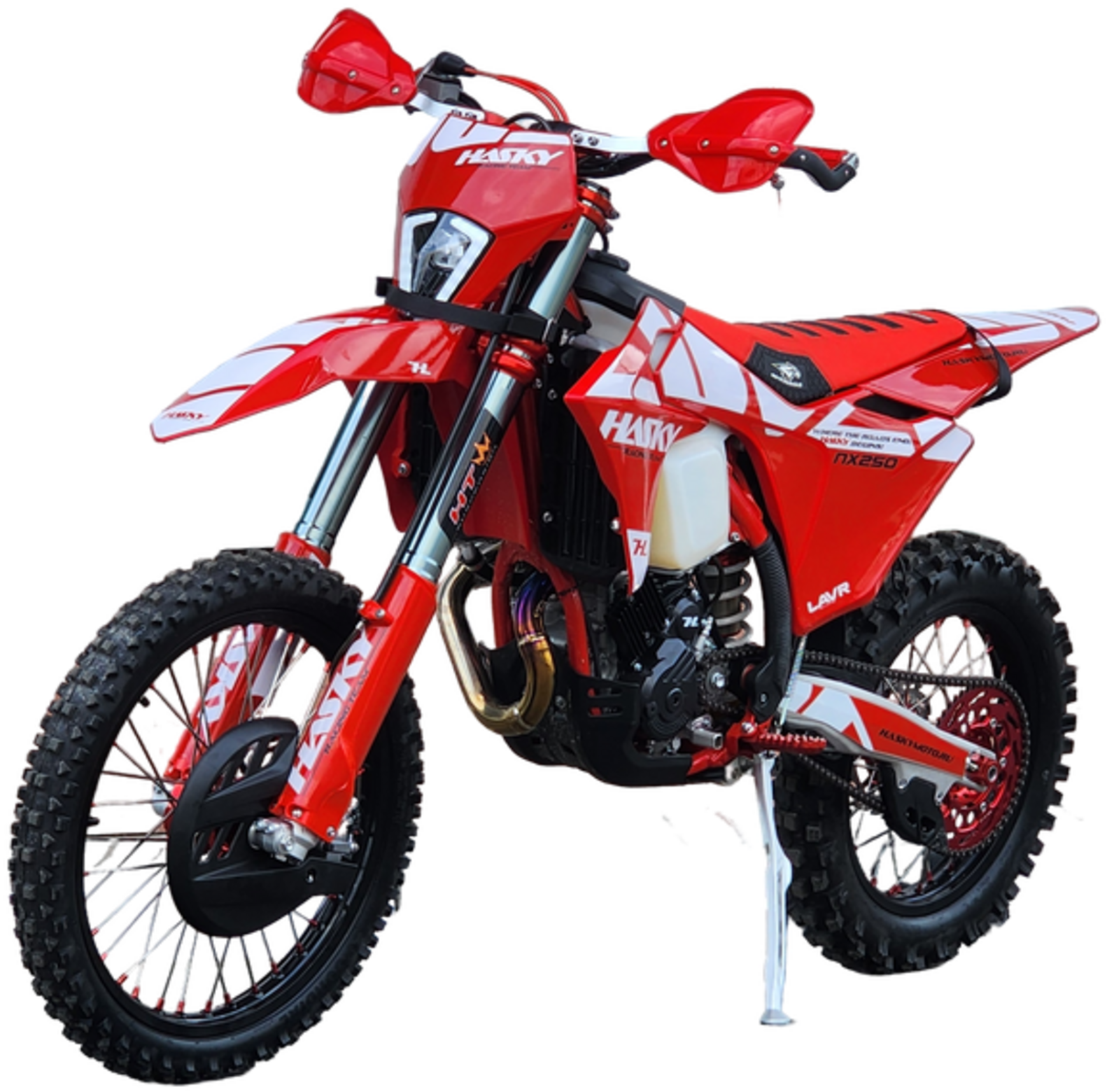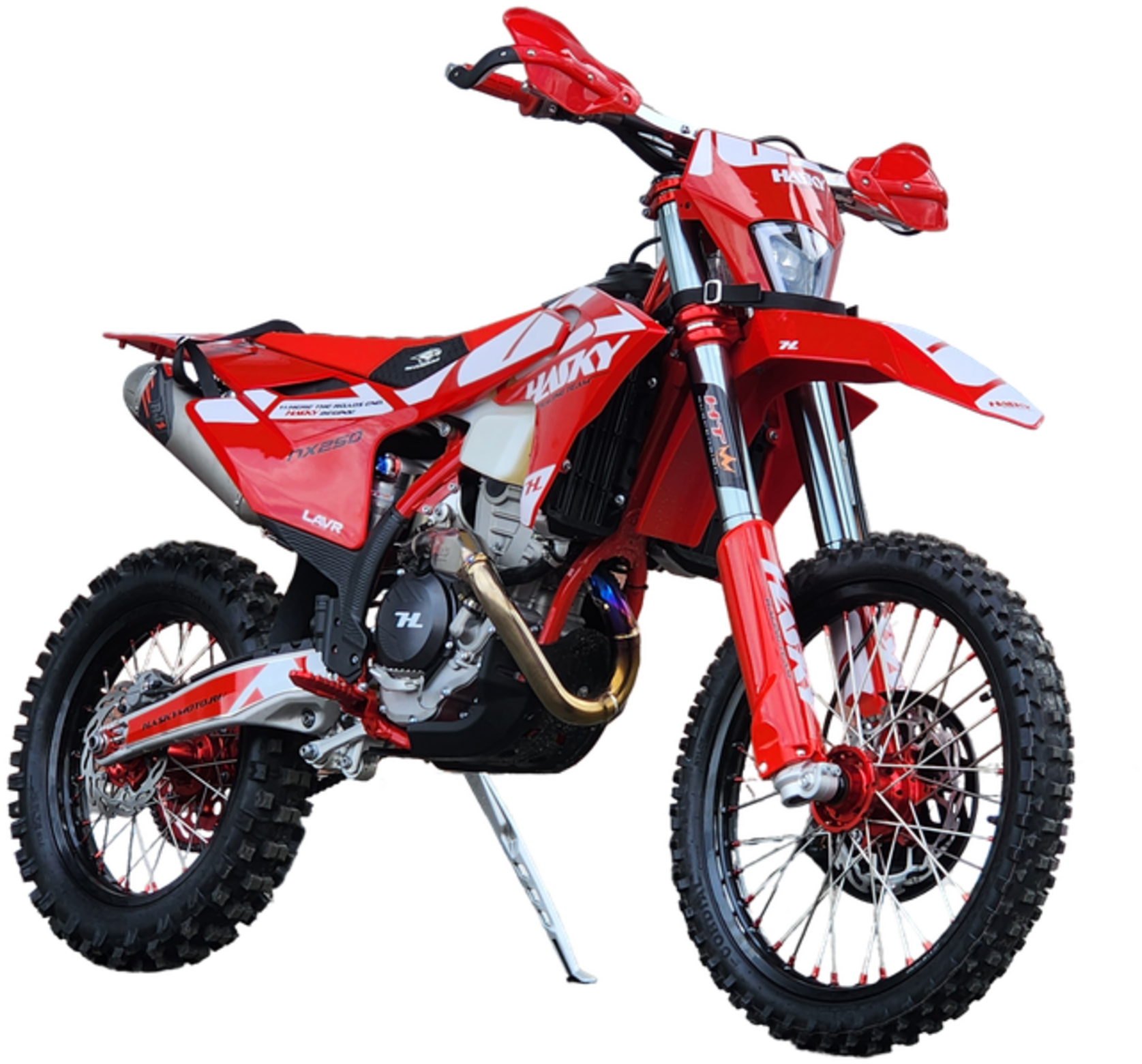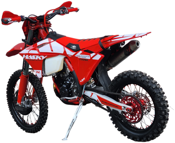 Hasky A10 PRO NX250 – легендарная мощность для настоящих победителейМотоцикл Hasky A10 PRO NX250 воплощает в себе 43 лошадиные силы неудержимой энергии и премиального качества. Этот полноразмерный байк на колесах 21/18 дюймов с новой рамой A10 и пластиком в стиле GasGas 2024 создан для тех, кто стремится к абсолютному лидерству.Сердцем модели стал инжекторный 4-клапанный двигатель ZS178MM-2 с системой Bosch и балансирным валом, выдающий впечатляющие 43 л.с. мощности. Шестиступенчатая коробка передач с электростартером и гидравлическим сцеплением AJ1 обеспечивает мгновенный отклик и полный контроль.Подвеска HTW T10 с 48-миллиметровыми перевернутыми вилками закрытого картриджа и прогрессивной характеристикой гарантирует идеальную управляемость. Титановая выхлопная система, траверсы CNC AJ1 двойного охвата и 360-градусная защита перьев вилки демонстрируют внимание к деталям.Тормозная система AJ1 (аналог Brembo) в сочетании с алюминиевыми ободами KKE, фрезерованными ступицами и подшипниками NSK обеспечивает непревзойденную безопасность. Комплектация включает усиленный руль из сплава 7075, пульты KTM, антискользящее сиденье AJ1, пеги и лапку КПП в стиле KTM.Защита двигателя, радиатора, рамы и тормозного диска дополнена буксировочными стропами. Покрышки Cordial на 18-дюймовом заднем и 21-дюймовом переднем колесах с 3-миллиметровыми камерами и фиксаторами AJ1 обеспечивают надежное сцепление.Дополнительные преимущества включают негорючий воздушный фильтр увеличенной площади, полностью влагозащищенную проводку, светодиодную фару с 4 линзами и комплект инструментов.