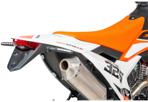 • В отличие от базовой версии, здесь установлены поворотники и задний стоп-сигнал, что делает мотоцикл более универсальным (хотя ПТС по-прежнему отсутствует, подчёркивая его внедорожную специализацию).