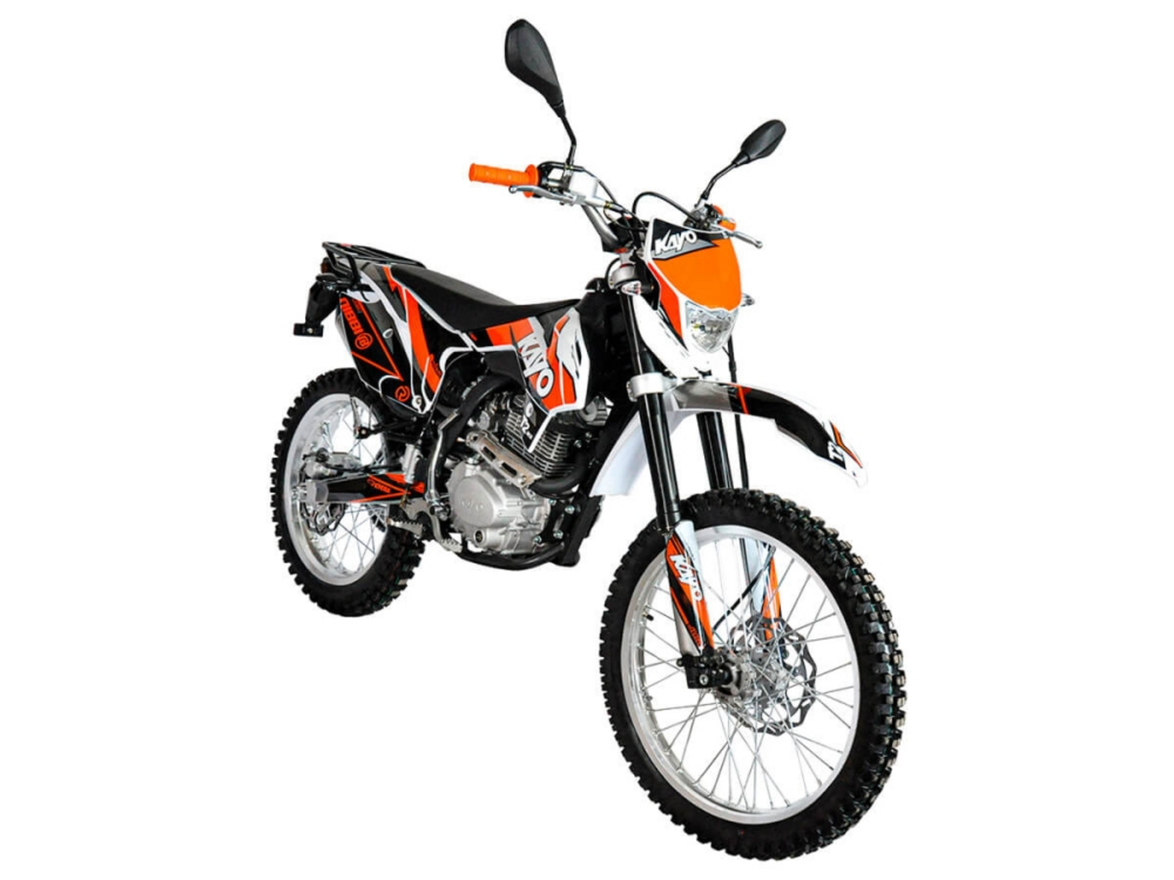KAYO T2 250 MX - одна из популярных моделей в линейке мототехники Kayo, которая унаследовала все лучшие черты легендарного KAYO К1. Этот доступный внедорожный мотоцикл отличают высокая надежность, легкость в управлении и привлекательный дизайн. Кроме нового двигателя многоцелевой байк получил полный комплект оборудования, необходимого мототехнике для передвижения по дорогам общего пользования.Данная модель собрана на проверенной временем и тысячами пользователей полудуплексной раме, для производства которой используются марки стали с лучшими характеристиками. В раме мотоцикла установлен мотор ZONGSHEN ZS169FMM - одноцилиндровый 4-тактник воздушного охлаждения объемом 233 кубических сантиметра с 5-ступенчатой коробкой передач. Достаточно производительный и надежный мотор, показатели максимальной мощности которого составляют 16,5 л.с. на 7000 об/мин, а пиковый крутящий момент равен 17 Нм при 6000 об/мин.За питание двигателя отвечает карбюратор NIBBI PE30 производства бренда спортивных мотокомплектующих Nibbi Racing. Система запуска двигателя продублирована в двух вариантах – при помощи кнопки электростартера или при помощи рычага кик-стартера.Набор компонентов подвески – вполне традиционный для техники этого класса. Спереди в траверсах стоят амортизаторы телескопической вилки перевернутого типа длиной 800 миллиметров, сзади стальной маятник крепится к моноамортизатору длиной 360 миллиметров. Степень сжатия пружины заднего амортизатора можно отрегулировать, другие настройки отсутствуют, однако подвеска готова продуктивно решать большинство эксплуатационных задач.В комплект дополнительного оборудования мотоцикла входят светодиодная фара, указатели поворотов с гибкими кронштейнами крепления, задний габарит, стоп-сигнал и приборная панель с ЖК-экраном с подсветкой. Мотоциклы KAYO T2 250 MX рассчитаны как на внедорожное использование – это может быть кантри-кросс, поездки по легкому бездорожью, так и на эксплуатацию на дорогах общего пользования.
