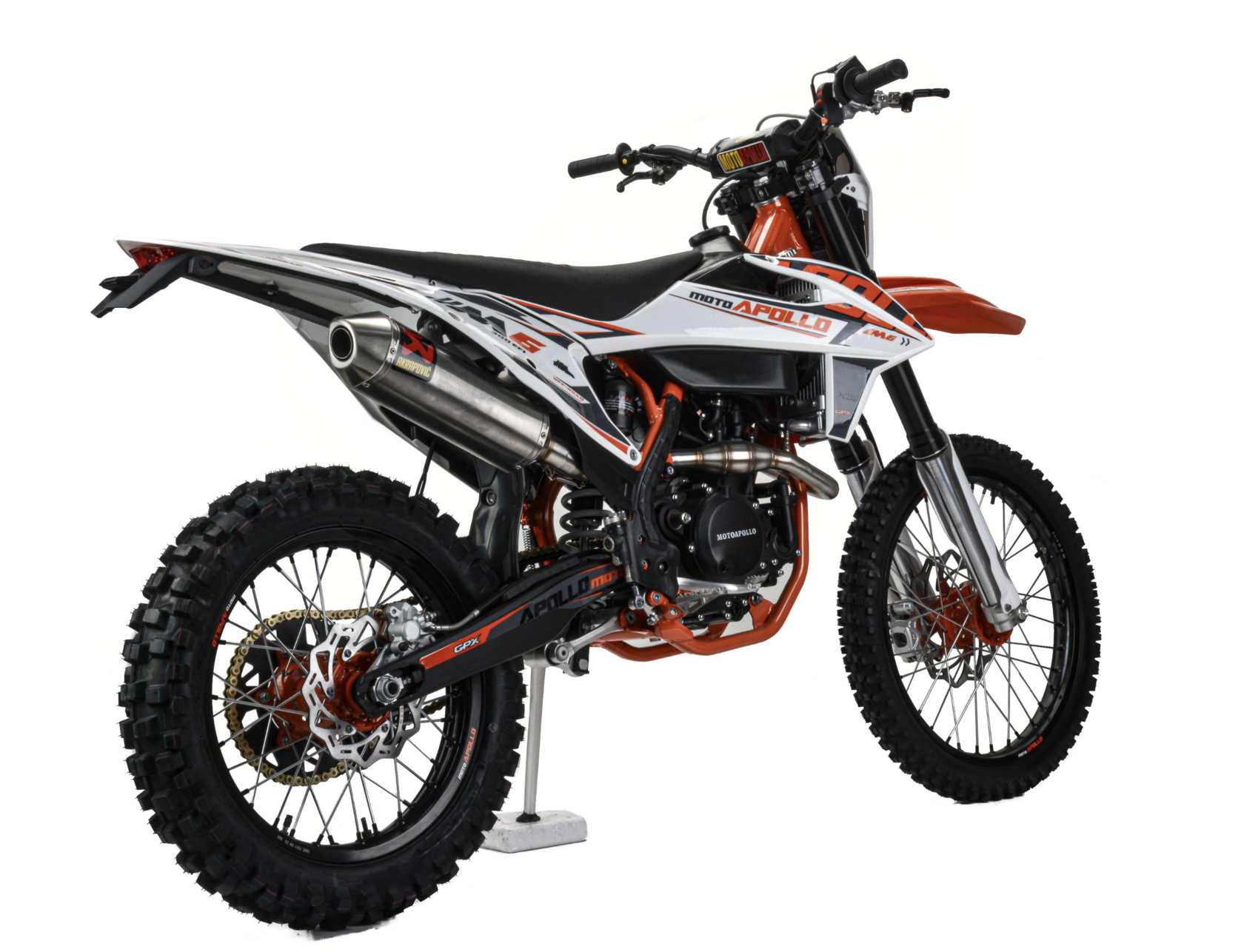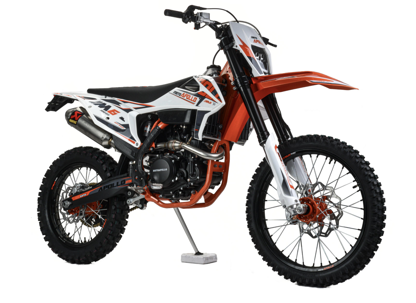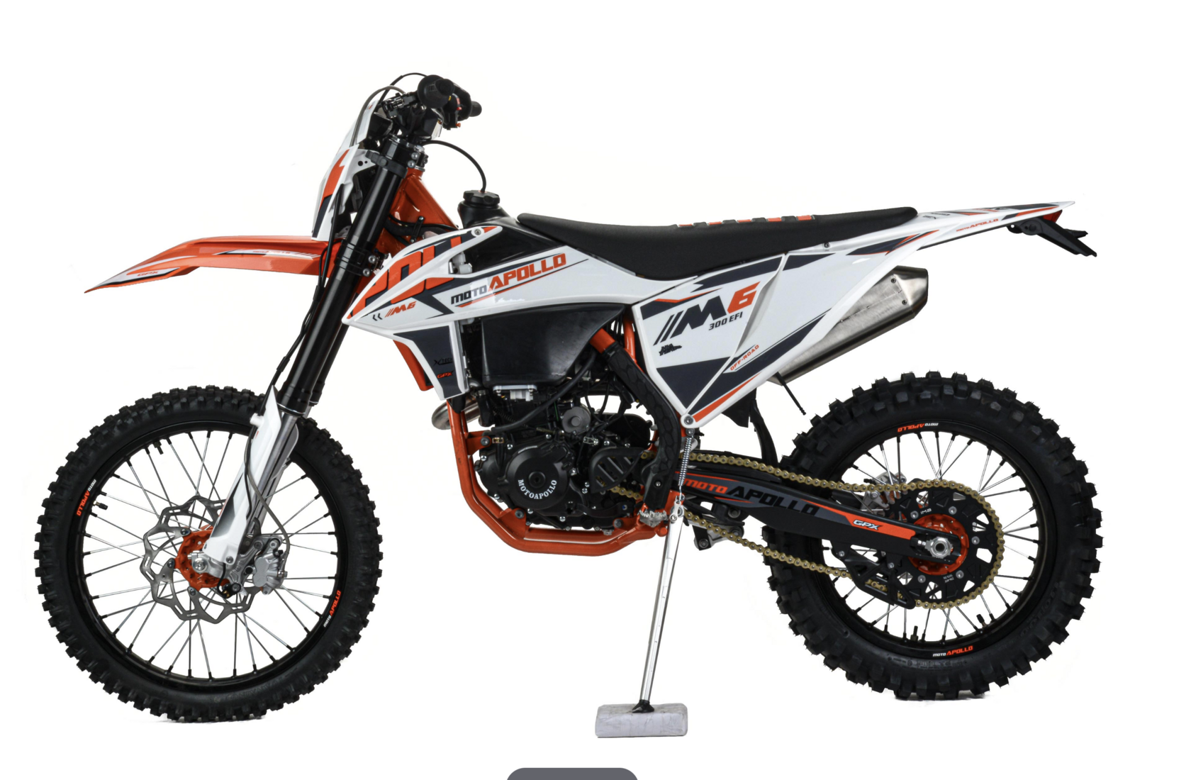 Мотоцикл moto Apollo M6 300 EFI - кроссовый мотоцикл с полноценной колесной базой и высокой посадкой вбогатой комплектации. Мотоцикл оснащен двигателями NC182 MN EFI с балансировочным валом и водяным охлаждением, комплектуетсяэлектронной системой впрыска с возможностью настройки систем питания.Отлично подойдет для людей с продвинутым уровнем, а также для участия в соревнованиях.Визитной карточкой мотоцикла является агрессивный дизайн, рама из Cr-Mo труб, обладающейвысокими прочностными характеристиками, современной подвеской с выносными регулировкамиотскока и компрессии, фрезерованными анодированными траверсами передней вилки, ободами изавиационного алюминиевого сплава, наличие электростартера, Линзованной LED оптики свозможностью переключения ближний\дальний свет. Выхлопная система с резонатором "AKRAPOVIC"совместно с системой POWER BOMB, которая увеличивает мощность на низких оборотах и улучшаетдожигание топливной смеси, что ведет за собой экономию топлива на средних оборотах.NC182