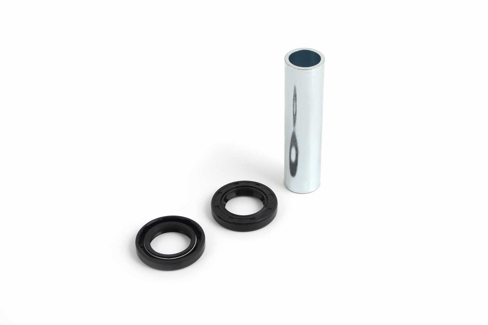 Комплект для обслуживания задней ступицы колеса, включает прецизионную втулку и два пыльника/сальника. Позволяет быстро заменить изношенные детали, продлив срок службы колёсной оси и защитив подшипники от грязи и воды.
