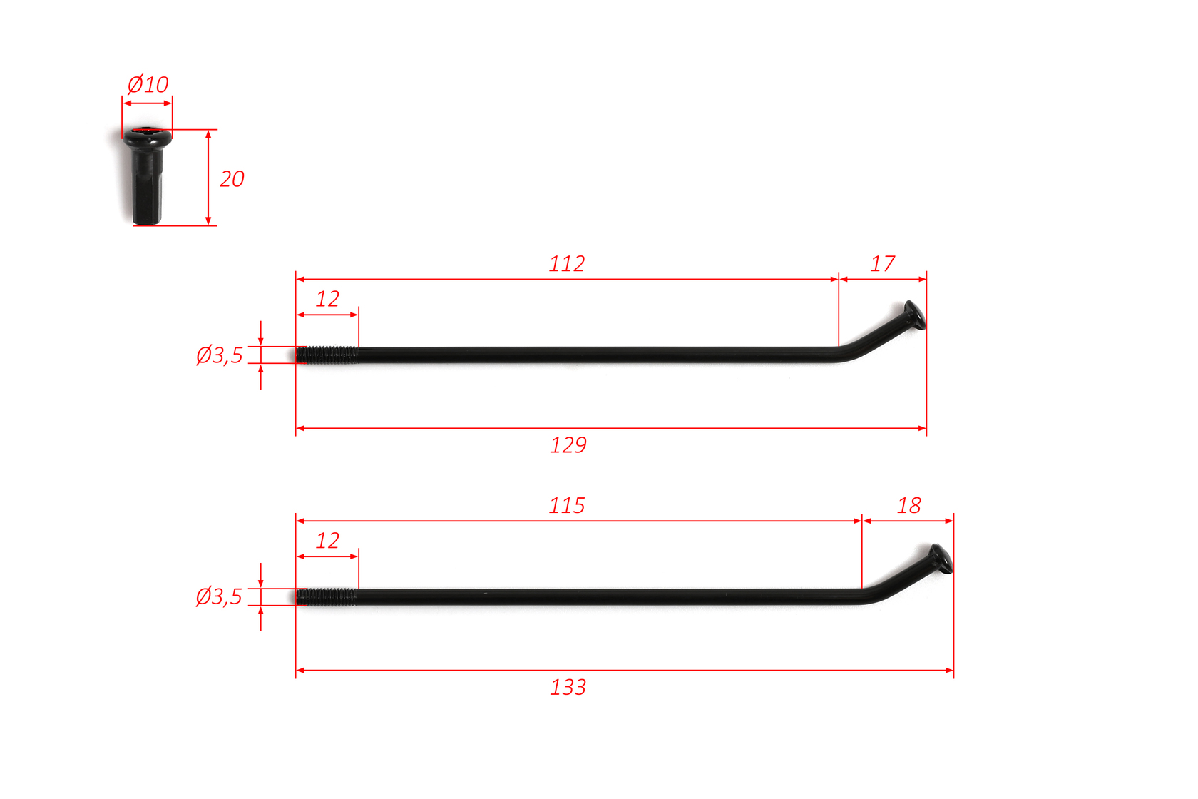 Главная ... Спицы, буксаторы, оси, втулки Спицы комплект R12 32шт. задние для питбайка усиленные (чёрные)