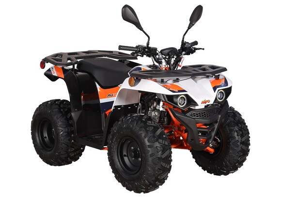 Квадроцикл KAYO AU125 – мощная внедорожная техника для весёлых заездов на природе. Наличие ПТС позволяет ездить по дорогам общего пользования. Габариты и мощность подходят для использования квадроцикла детьми от 11 лет.Оснащён одноцилиндровым 4-тактным двигателем YX154FMI объёмом 120 см³ с воздушным типом охлаждения. Обеспечивает мощность в 7,9 л.с. За подачу топлива отвечает карбюратор JK PZ22WL. Обеспечивает бесперебойную работу в самых жёстких условиях, лёгок в обслуживании и неприхотлив к качеству топлива. Трансмиссия имеет цепную передачу и автоматическую коробку с реверсом и схемой F-N-R. Ёмкость бака 4,5 литра.Диаметр колёс 8 дюймов. Подвеска спереди и сзади представлена амортизаторами длиной 265 мм. За торможение отвечает дисковая гидравлическая система.Квадроцикл оснащён комплектом светотехники для поездок в тёмное время суток и по дорогам общего пользования.Габариты квадроцикла 1430х860х890 мм, вес 98 кг.