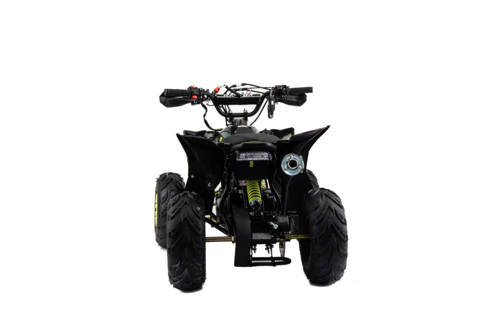 1Квадроцикл Motoland 110 RAPTOR A cтильный, современный, квадроцикл подойдет вашему ребенку как мальчику, так и девочке. Его спортивный дизайн разработан с учетом вкусов современного поколения и понравится всем без исключения. Квадроцикл не предназначен для дорог общественного пользования. Его 6 дюймовые колеса на хорошей внедорожной резине с легкостью преодолеют все преграды в виде грязи, песка, луж и кочек. А что еще нужно для веселых покатушек в выходные дни? У этого квадроцикла отличная управляемость в любых условиях эксплуатации, благодаря грамотной настройке подвески. Данный квадроцикл оснащен вариатором с реверсом, который установлен на усиленной раме, что дает уверенность в прочности конструкции.Ваш ребенок быстро овладеет навыками езды на данной технике и получит массу запоминающихся эмоций.Квадроцикл оснащен двигателем 1P39FMA 110 см3, мощностью 7 л.с. c воздушным охлаждением, электрстартером, светодиодной оптикой, стоп-сигналом. Тормозная система: передние - барабаны / задний - гидравлический дисковый.Для безопасности имеется чека отключения двигателя, если ребенок отпускает руль, то мотоцикл практически сразу отключается при разрыве чеки.